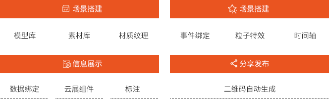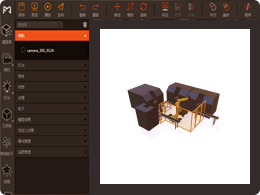 通过内设材质库、纹理库调整模型材质、纹理参数,调整场景背景效果,添加动画、特效、事件与2D组件。