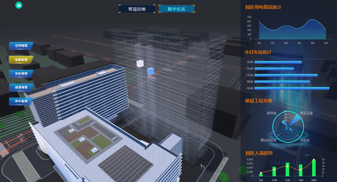 智慧楼宇具体包含智慧园区和智慧城市两大应用场景,基于智能基础设施、云技术、人工智能、物联网、数字孪生技术以及先进的管理软件,使园区或城市内的设备设施有条不紊、综合协调、科学地运行,实现资源整合、实时监控、异常预警等功能,从而提升楼宇整体运营管控效率。
